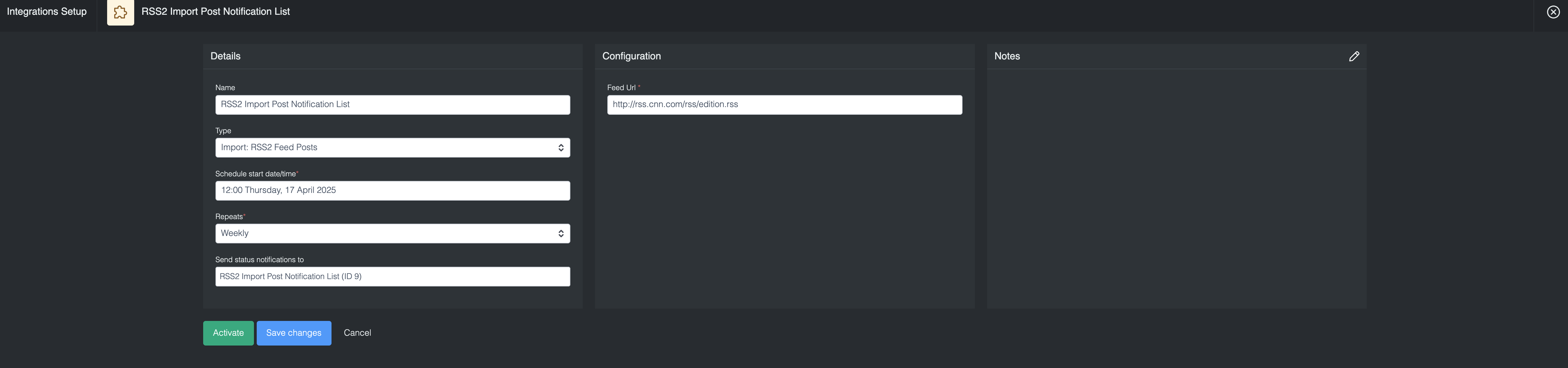 RSS2 Feed Import Integration